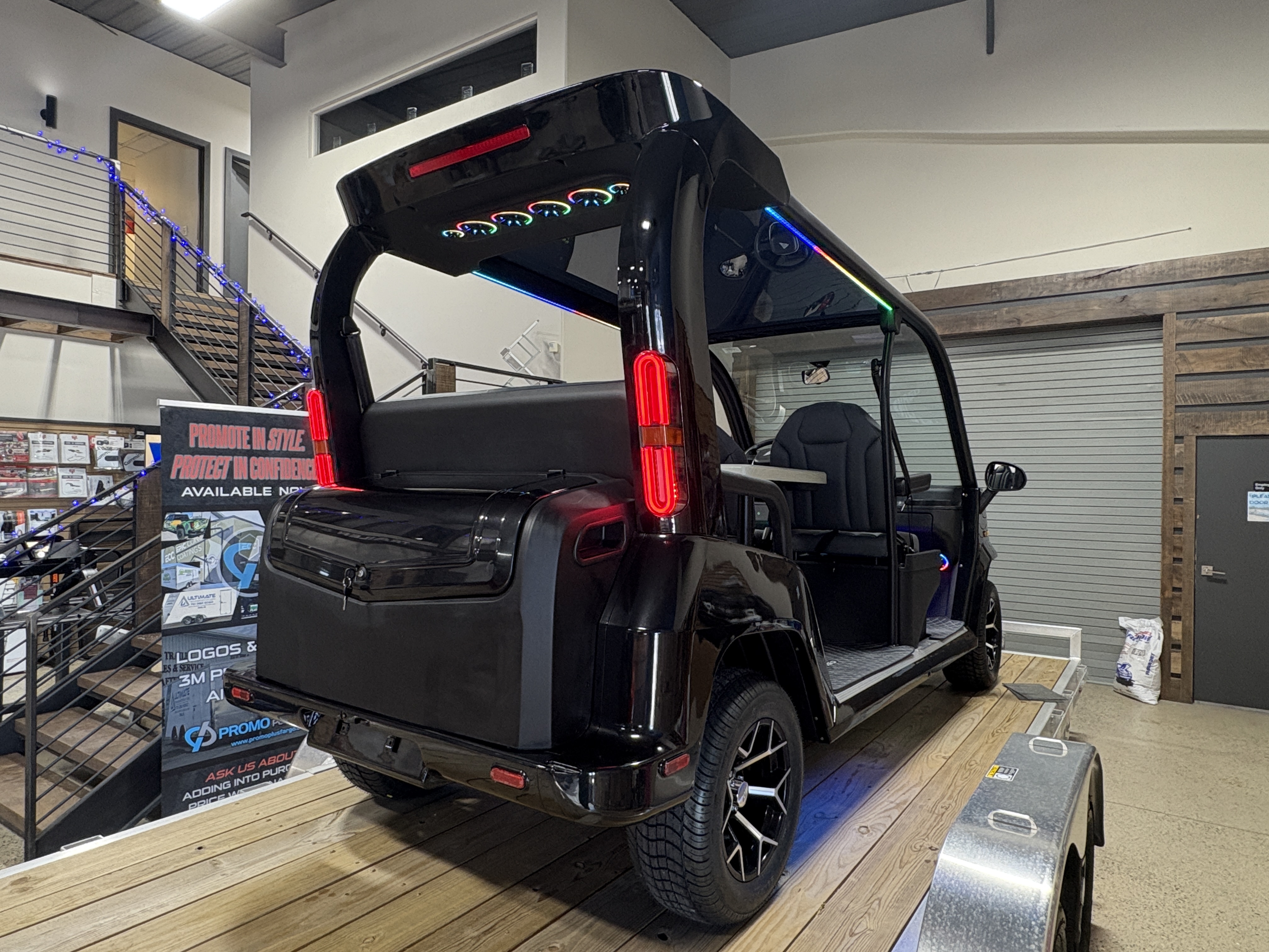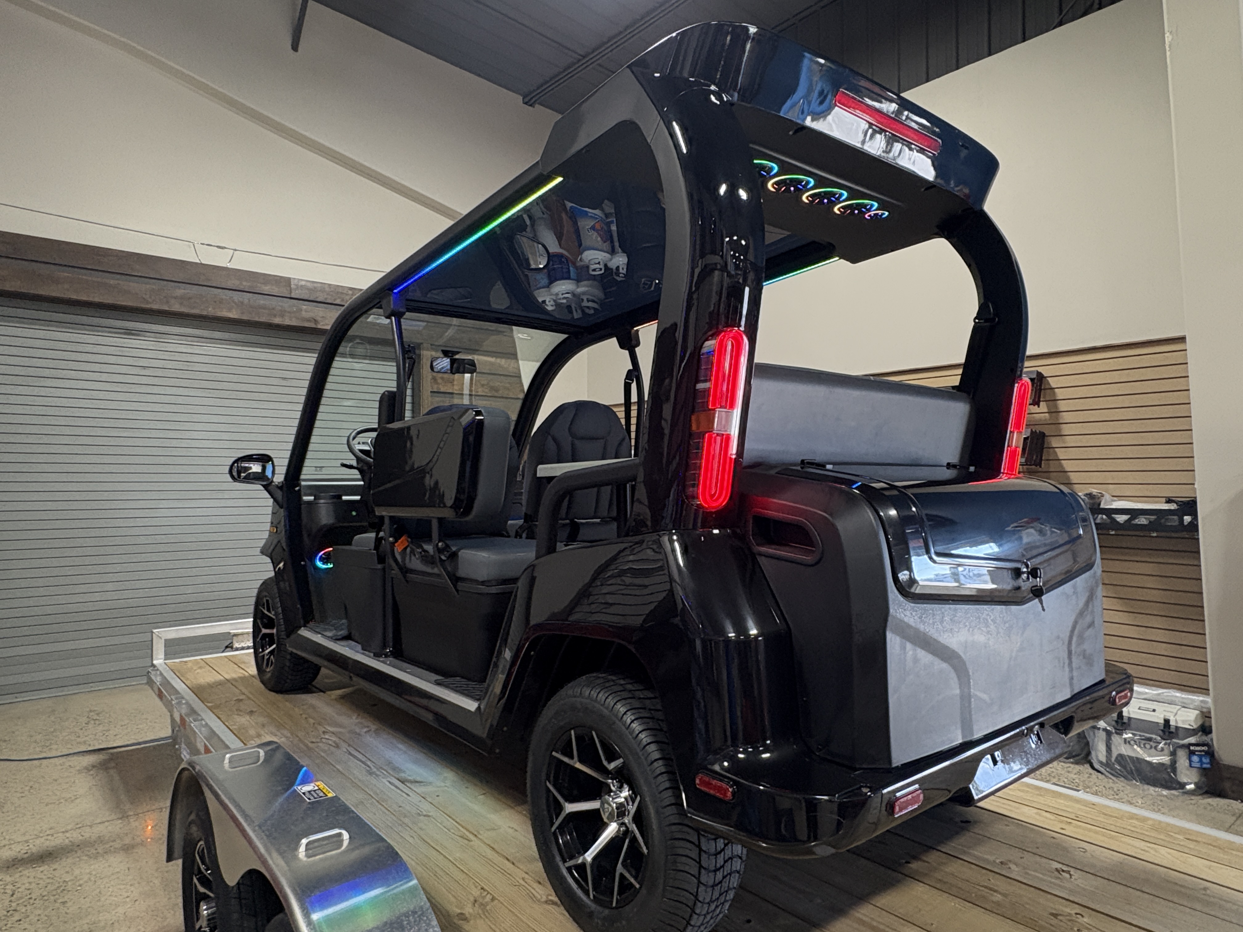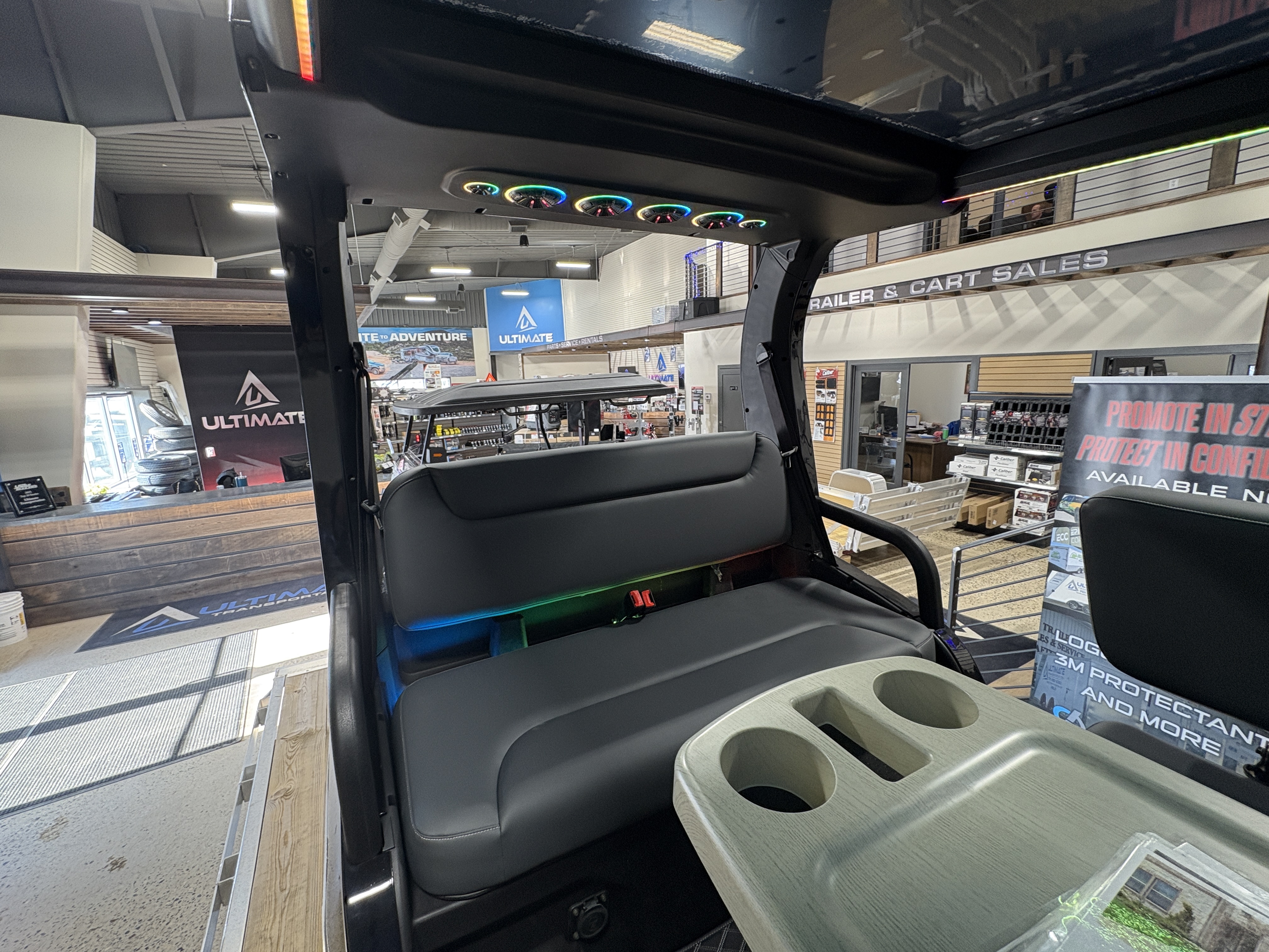 We can also customize this cart any way you’d like with options such as RGB underglow lighting, roof-mounted LED bars, additional LED light options in multiple sizes, custom seat covers, extra 12-volt outlets, and a full lineup of Wet Sounds, Sound Extreme, or Memphis audio gear—including Bluetooth soundbars. If you can imagine it, we can add it.