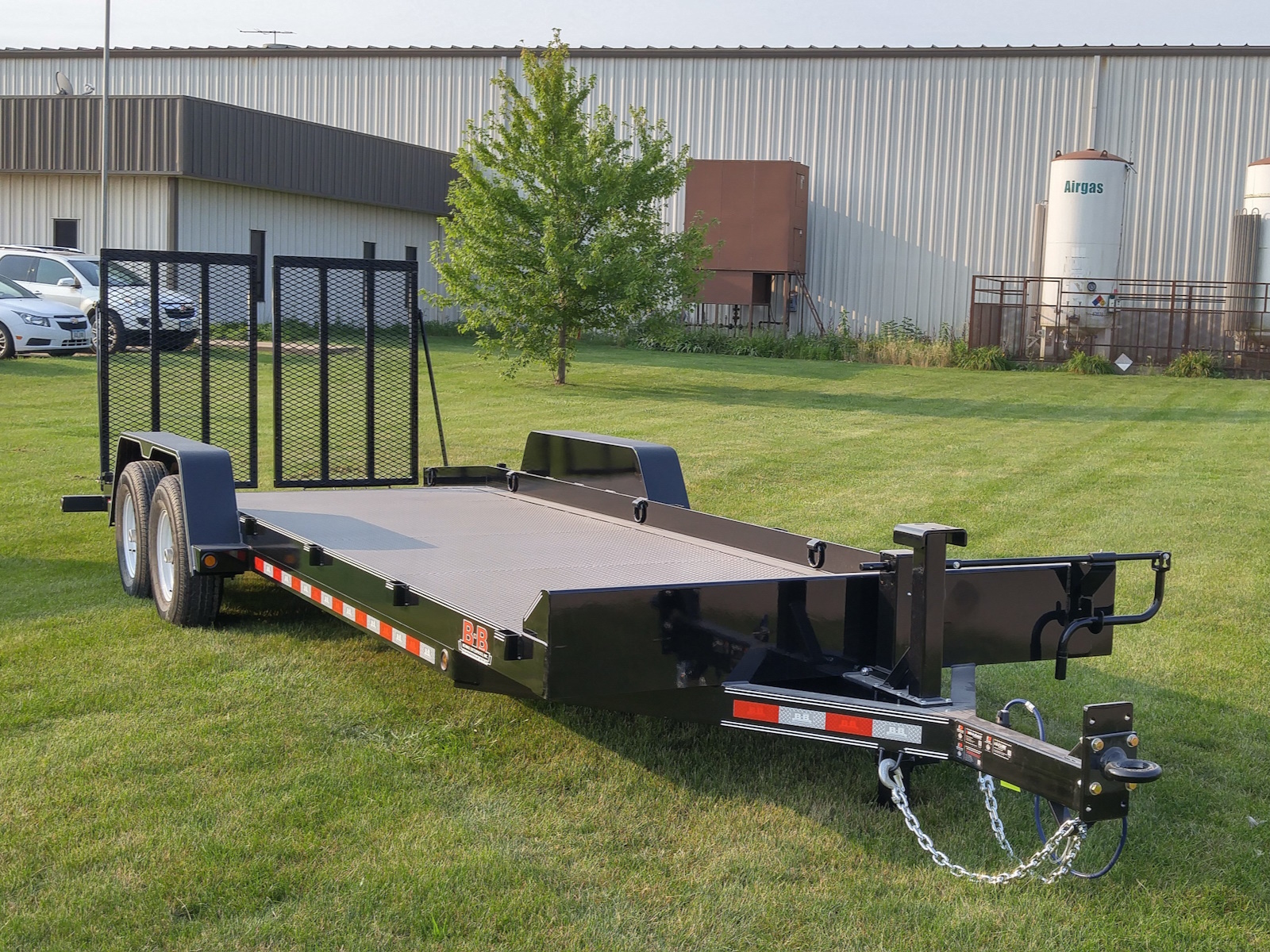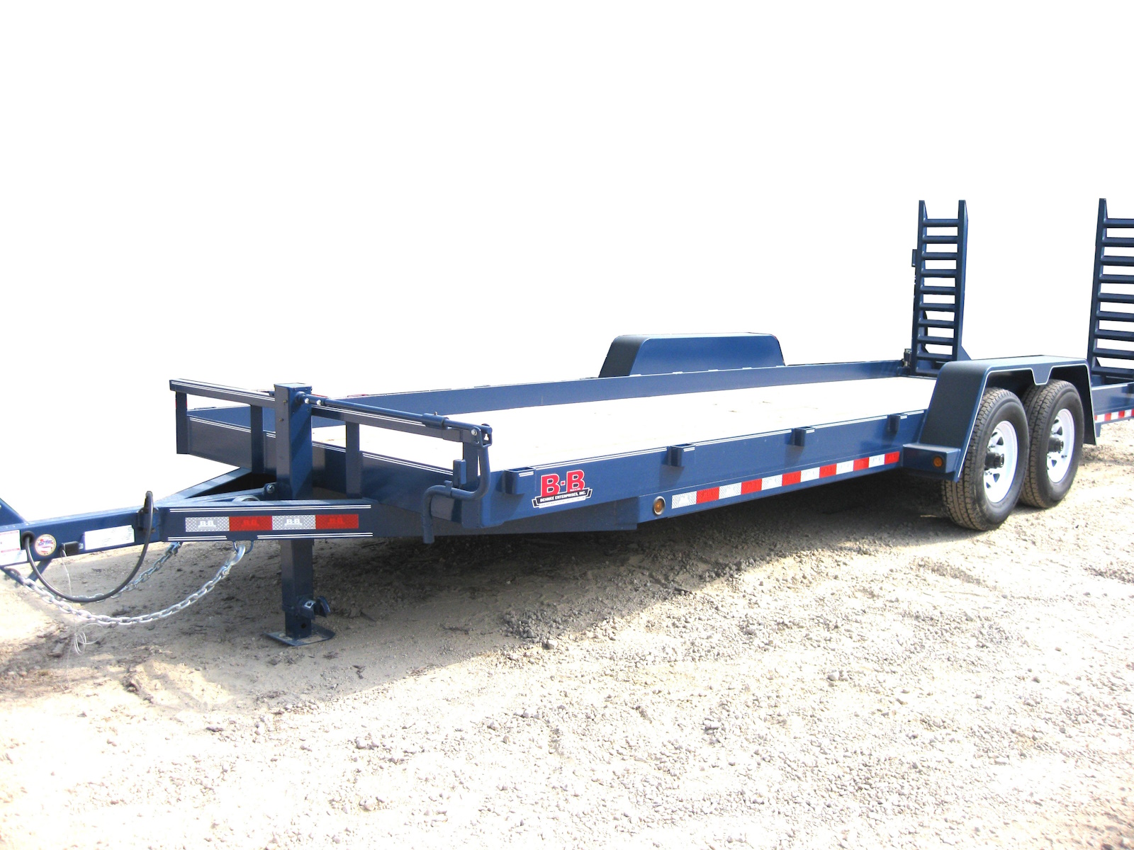 The beefiest angle frame skidloader trailers we make are the 14,000 lb. and 16,000 lb. GVW models. Both come standard with a 3/8" thick angle iron frame and an 83" width (81" on 16K) between the fenders. Available in lengths of 12'-26'