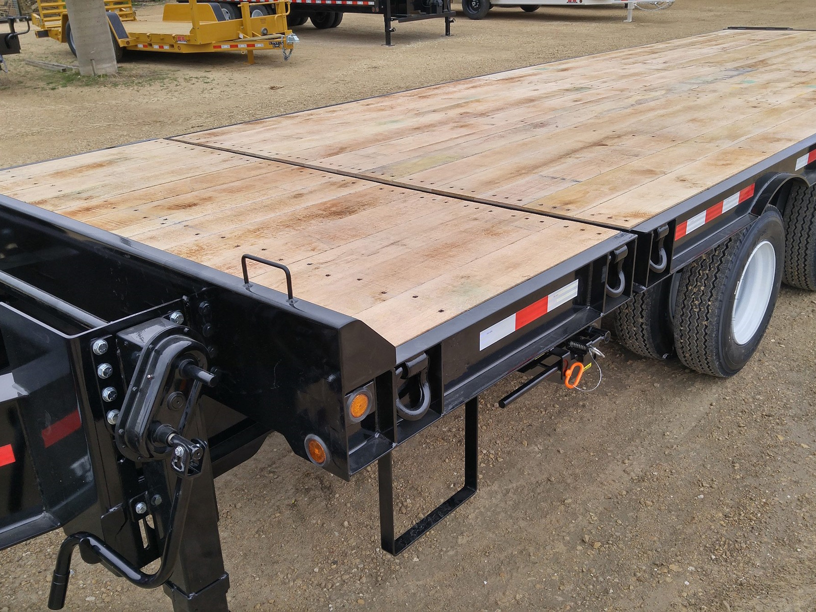 Our highly popular tag-style 40,000 lb. - 50,000 lb. deckover tilt is perfect for loading the heaviest equipment in your fleet. These models come standard air brakes and our custom 1-piece fabricated I-beam construction that produces a higher tensile strength beam than the steel mills produce. 24’ tilt decks come standard, then you are able to choose between a 4’ - 10’ stationary deck to fit whatever equipment you plan to haul on it. Various traction options are also available to give you some extra stability for loading on wet and muddy days.