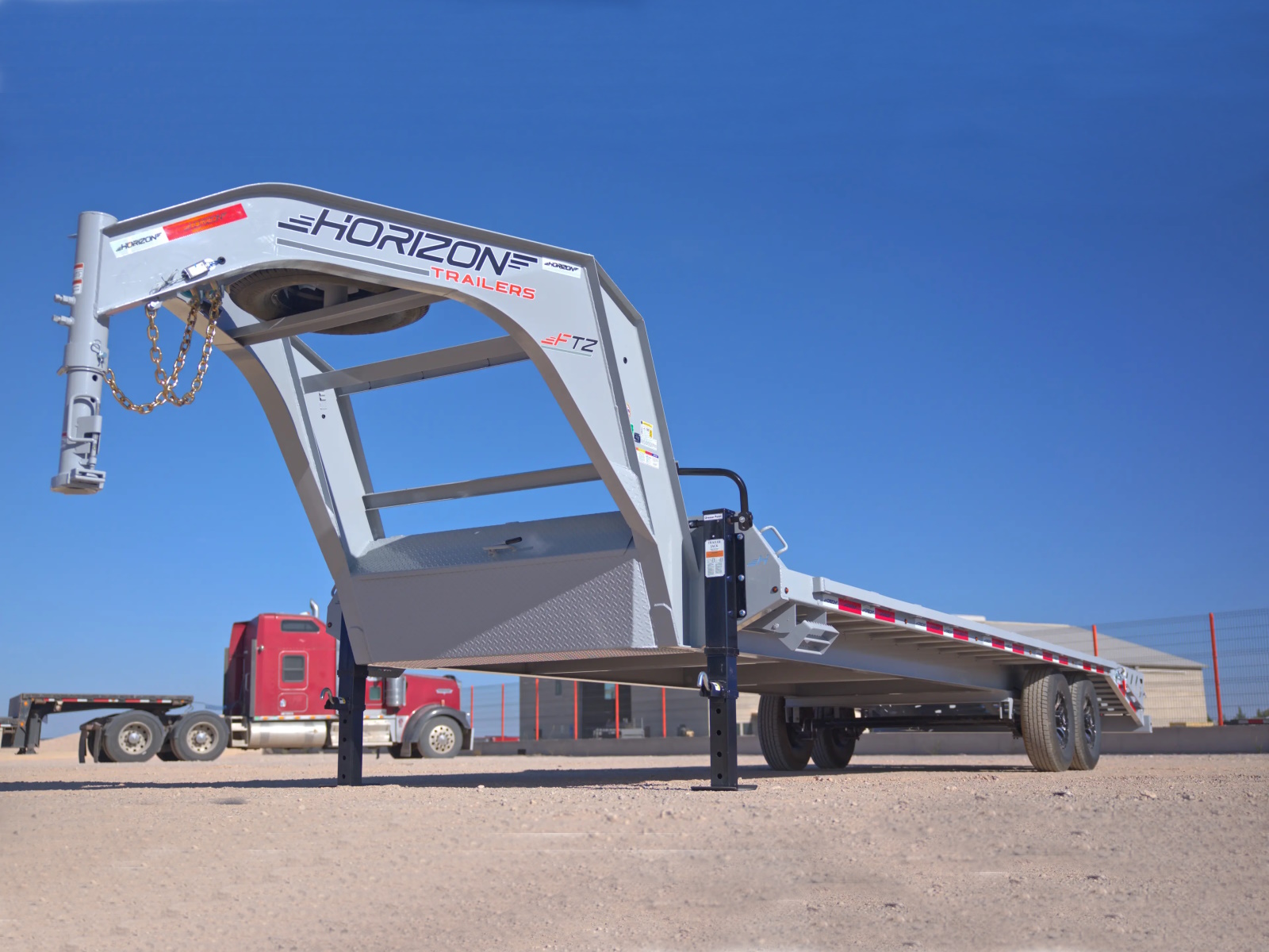 The FTZ 17.9K 102" FLATDECK is a robust gooseneck trailer featuring a 12" I-Beam frame, a 17,900 lbs GVWR, and versatile deck lengths from 20' to 44'. Its premium features include a Mega Lockable Toolbox, LED lighting, and powder-coated finishes in multiple colors for durability and style.