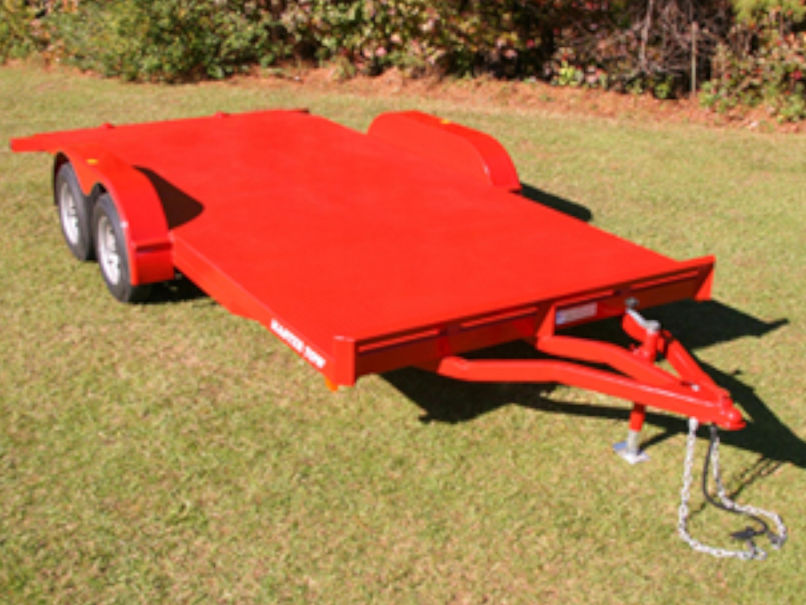 6'- 4" & 6'-10" wide Car Haulers: available in 16', 18', 20', 22', & 24' bed lengths. CH models feature an open center. FFCH models feature a full floor. Both models have slide-out ramps, light protectors, and 4 heavy duty D-ring tie down points. ; Standard features: tip-away jack, 7,000 lb. GCAWR, 1 electric brake axle, 14" tires & wheels, 1/8" steel diamond plate floor. Available options: stake pockets, spare tire & wheel mount, winch mount, 2nd brake axle, 10,000 lb. GCAWR package, 6'-10" wide bed.